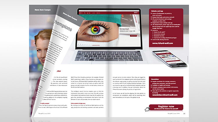 Inhaltliche Schwerpunkte sind Informationen rund um die weltweite Richard Wolf Unternehmens- und Produktwelt, aktuelle Veranstaltungen der Prima Vista Academy sowie nationale und internationale Kongressauftritte.