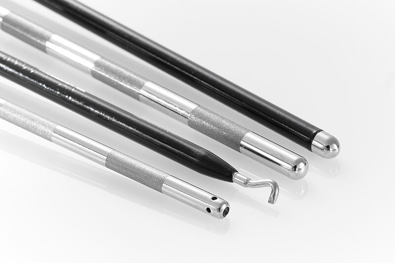 This unique instrument set for single-port medical thoracoscopy allows minimally invasive diagnostic and therapeutic procedures to be carried out with just one small incision. The 5.5 mm operating endoscope, that is the basis of the instrument set, features an integrated, 3.5 mm working channel which provides access for a variety of instruments. Suction and irrigation is also possible via the built-in suction/irrigation port or through the working channel with the use of a suction tube. The user-friendly ergonomic design increases comfort and control. A wide variety of compatible instruments like flexible and rigid trocar sleeves, biopsy forceps, hook and coagulation button electrodes, probes, and suction tubes can be added on to build a complete thoracoscopy set.