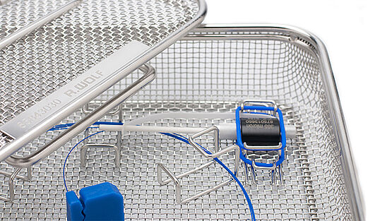Bei der maschinellen Reinigung folgt, vor allem bei dampfsterilisierbaren Medizinprodukten, eine thermische Desinfektion. Hierbei ist es essentiell wichtig, dass Optiken sicher in dem Reinigungs- und Desinfektionsgerät (RDG) fixiert werden. Dazu sind entsprechende Vorrichtungen, wie Optik Aufbereitungskörbe, notwendig.